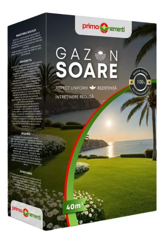 Seminte gazon soare 1 kg se adaptează foarte bine la terenurile însorite, dar irigabile. Formează un gazon foarte fin și foarte des. Nu necesită multe tăieri.